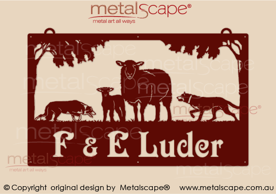 Large Property Sign - Cross bred Ewe & Lamb with collie and kelpie