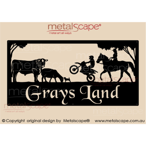 XL Property Sign -Angus Bull, Dorper Sheep, Motor Bike Rider, Female Horse Rider